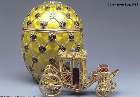 Fabergé var at hvert egg skulle inneholde en overraskelse, hemmelig også for tsaren, og at Fabergé fikk carte blanche til å lage hva han møtte ønske. Tsar Nikolaj I overtok tronen da faren døde i 1894. Han overtok tradisjonen med påskeeggene fra Fabergé, men bestilte hele to egg årlig frem til revolusjonen, ett til hustruen og ett til moren.